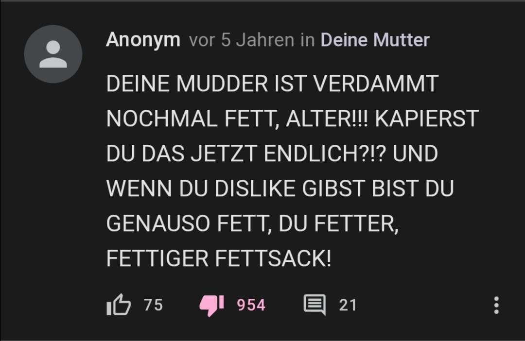 111 080vor 3 Jahrenschlechtewitze.com/witze/58108ffb759ee80b694ce86e/deine-mudder-ist-verdammt-nochmal-fett-alter so