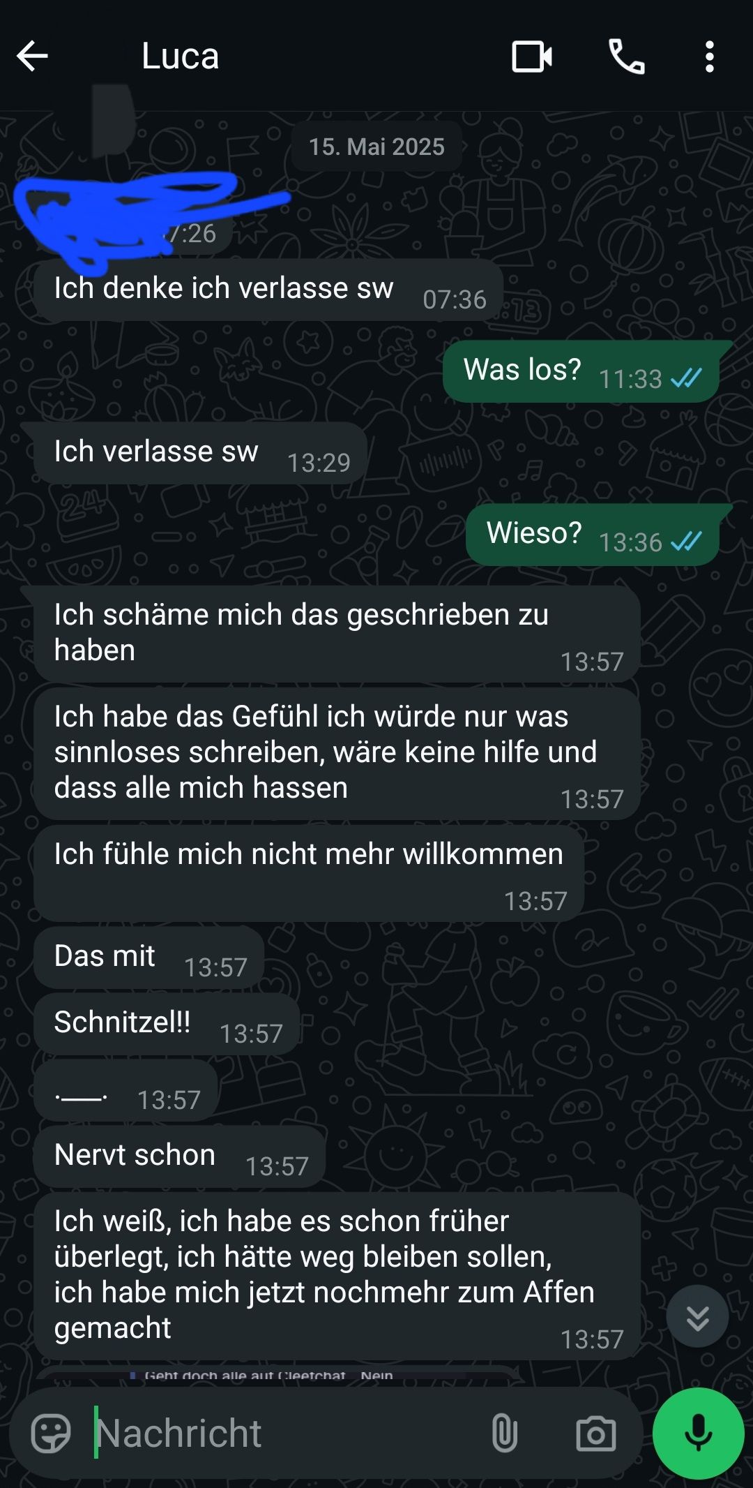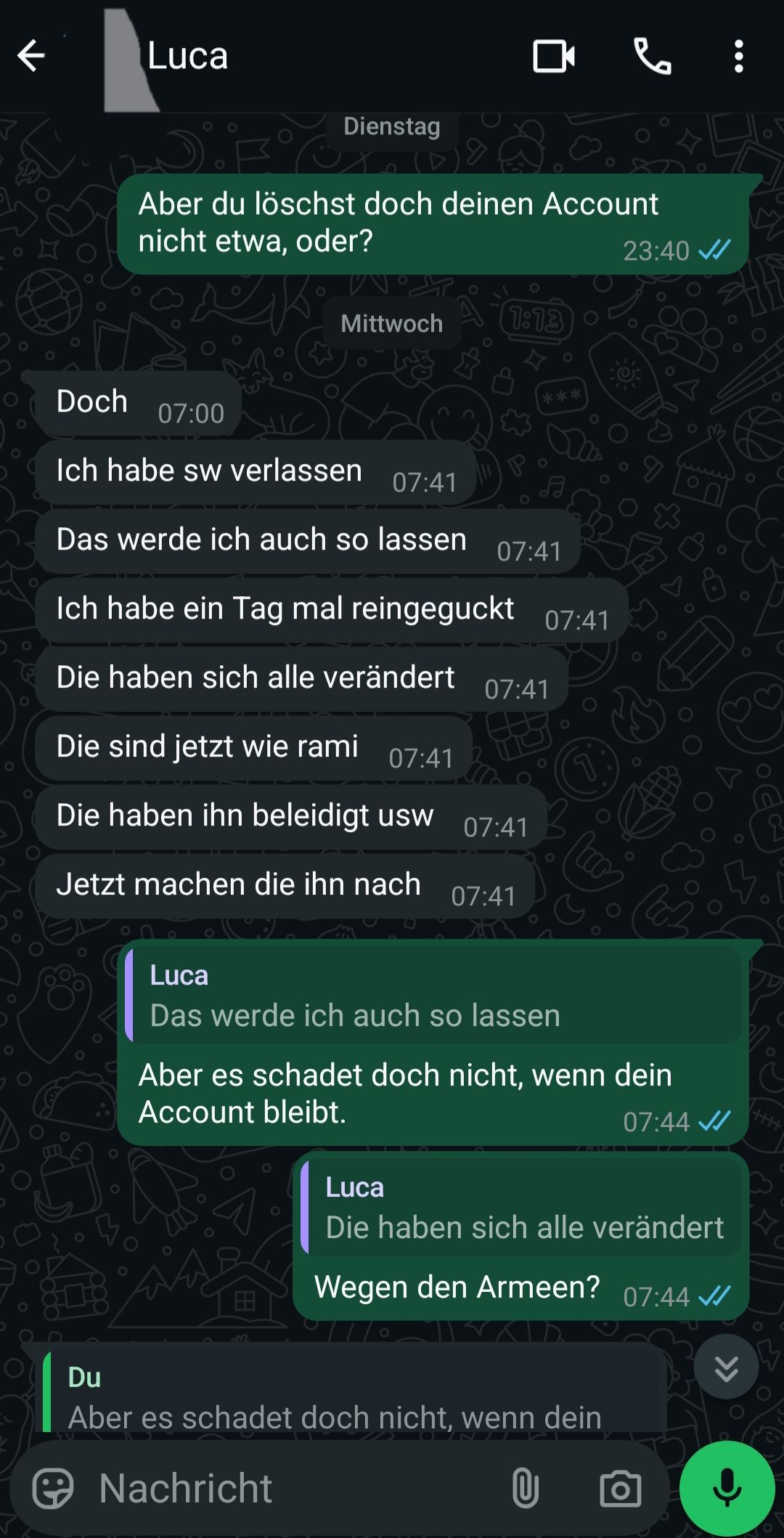 Hast du noch Ma mit ihm geschrieben?
