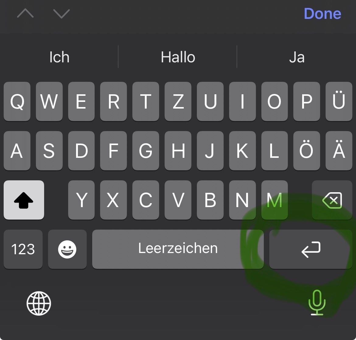 Was aber geht mit der Taste ist, dass ich bevor ich was schreibe neue Zeilen machen kann.