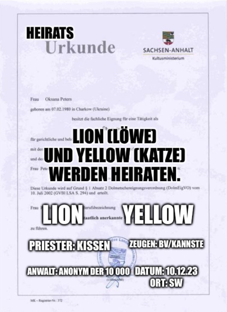 Oder yellow und mt heiraten einfach und lion wird wieder weggemacht
