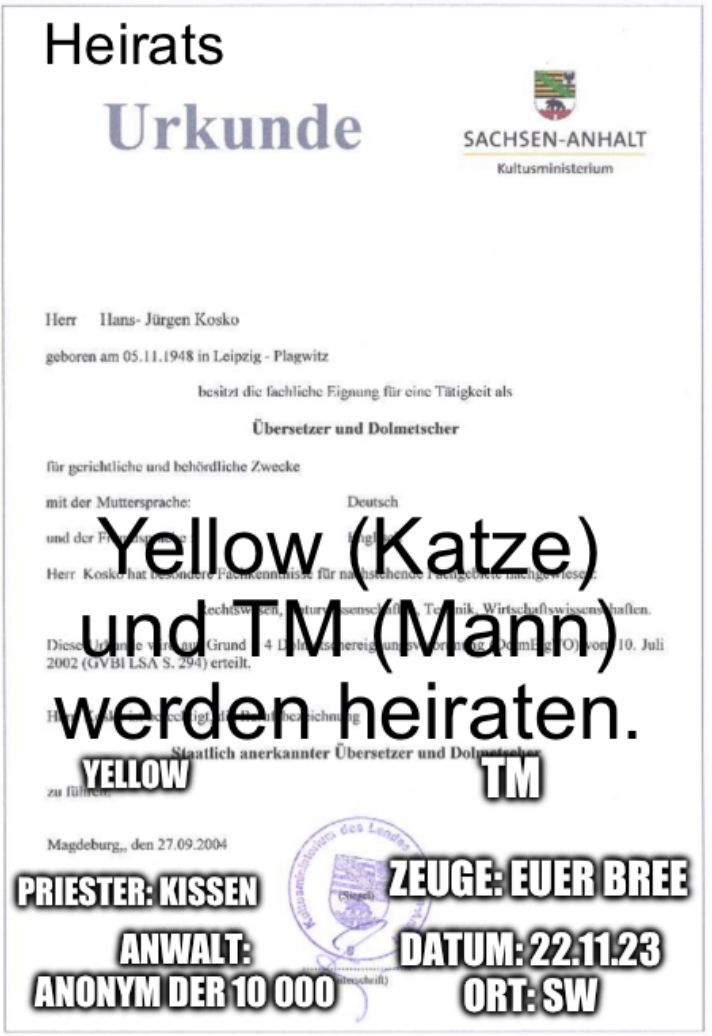 EINSPRUCH!!!!!!!!! Ich bin schon mit Yellow verheiratet!!!!!!!!!!!!! Das geht so nicht!!!!!