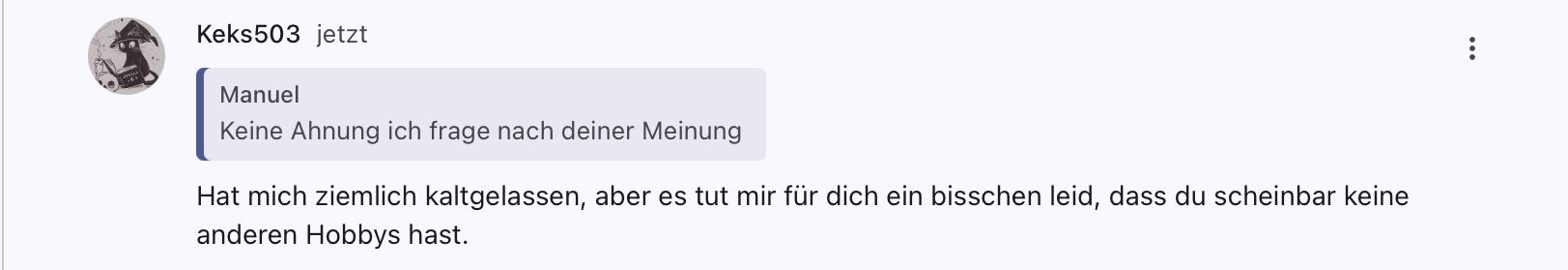 Warum nervst du dann Keks mit Manuel?