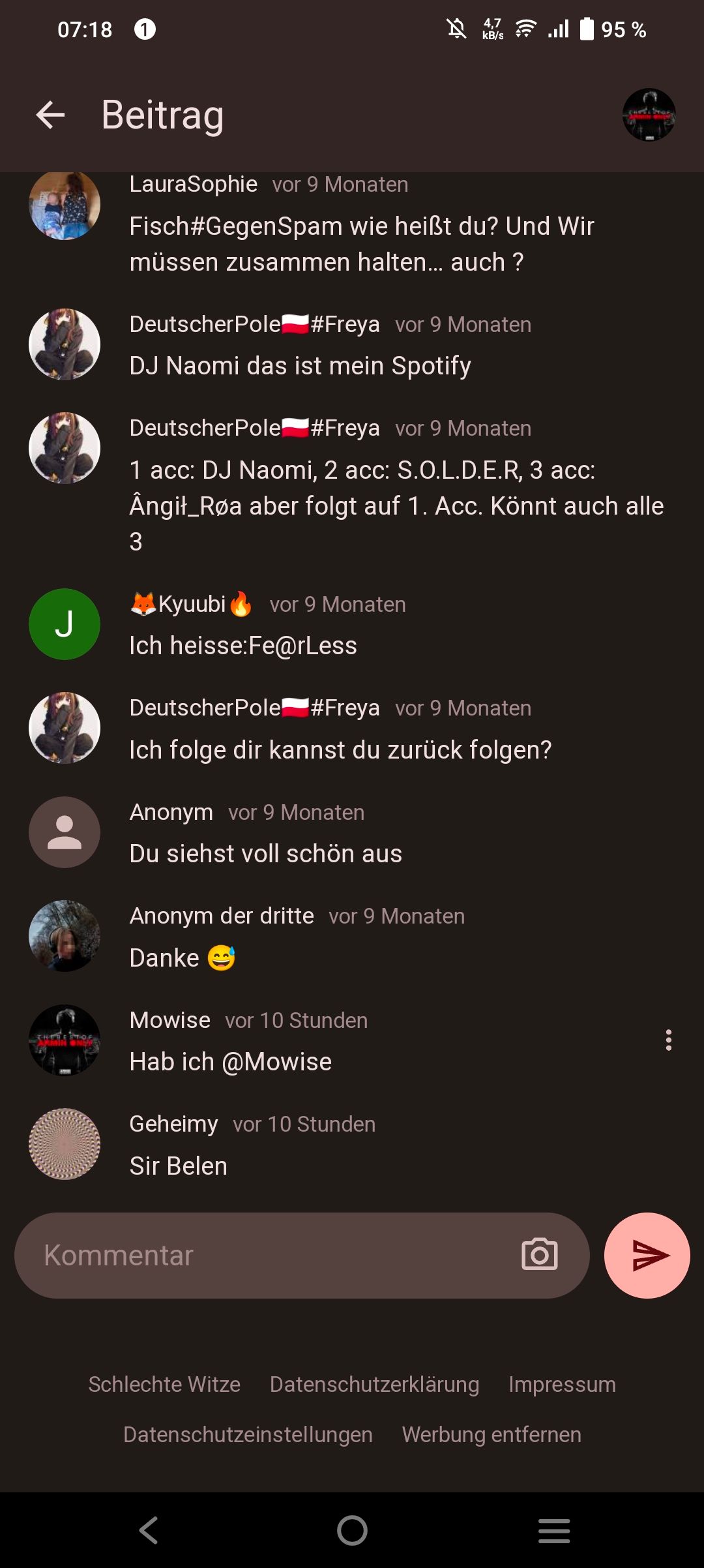 Anonymvor 3 JahrenDer ist ganz bestimmt Felix, er erstellt doch andauernd neue Accounts, und nennt sich anders, doch man kann an seiner Schreibweise erkennen, dass er dahinter steckt...