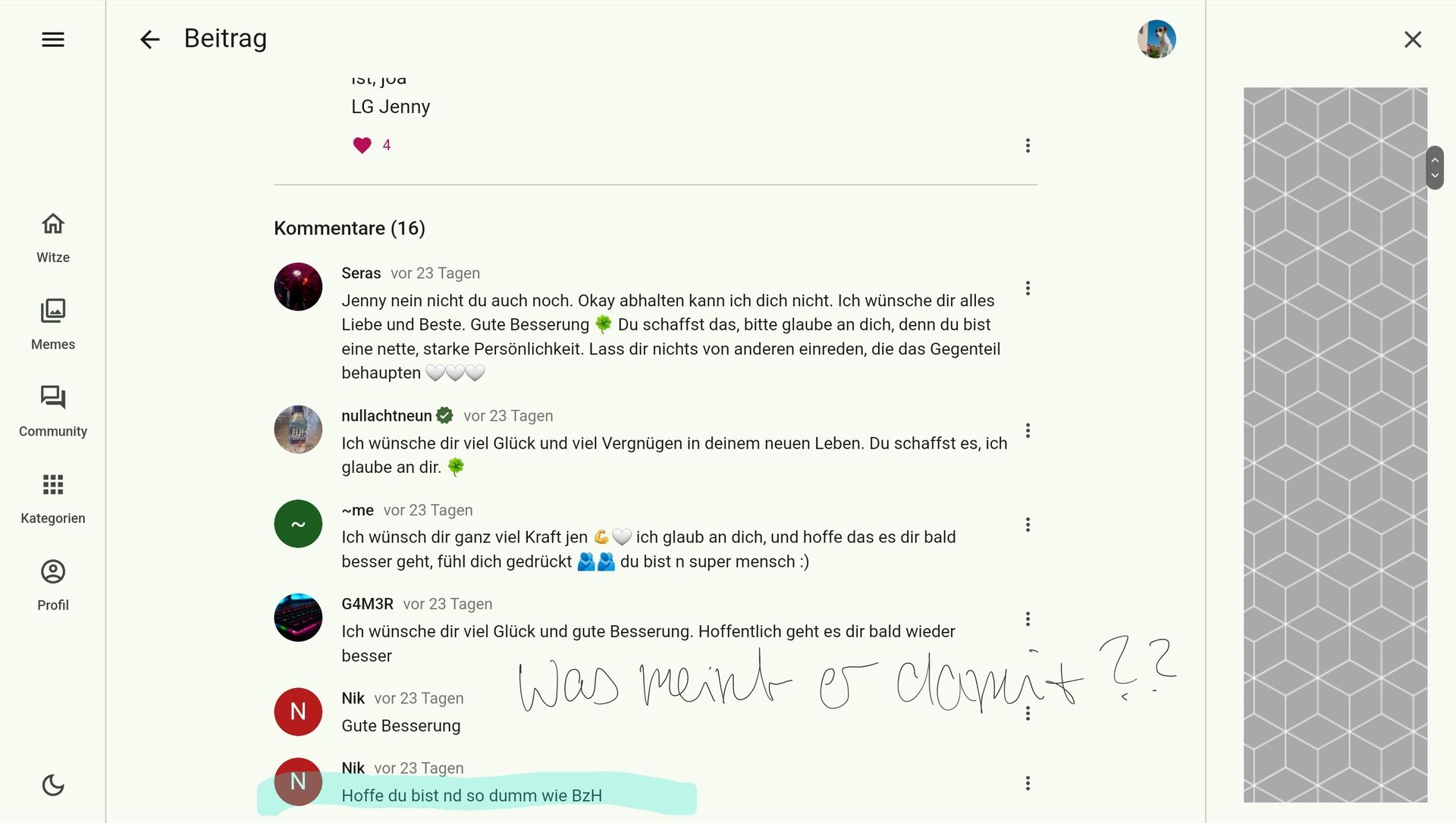Man kann jetzt auf Kommentare antworten und was Mods können schreine ich dir Privat