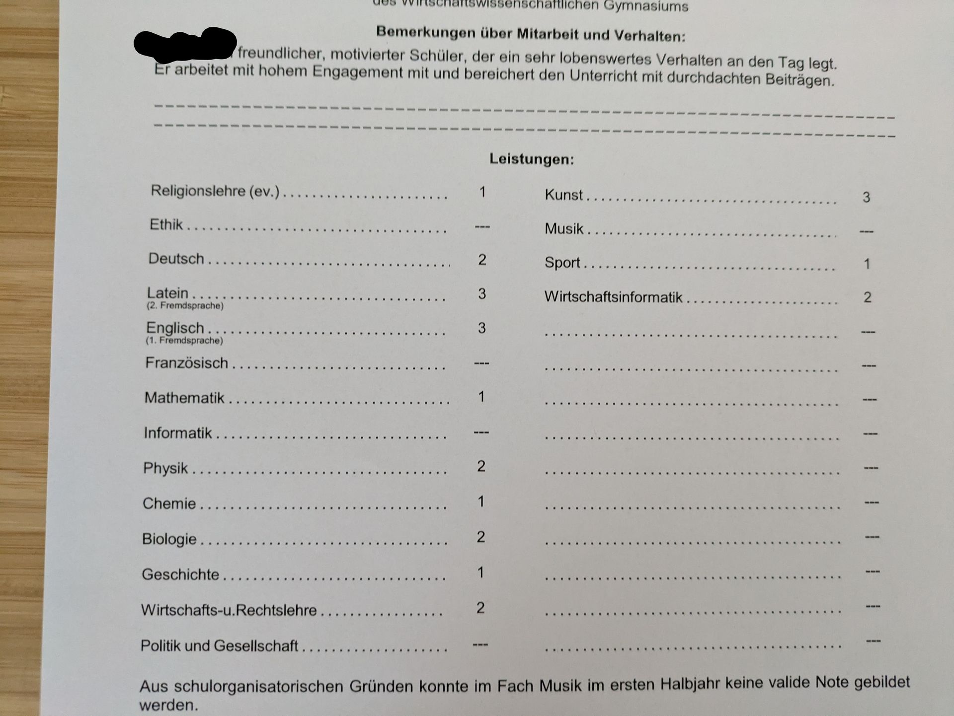 Ach so ja und bei mir steht bei Informatik keine Note drin weil ich das Fach in diesem Halbjahr nicht haben werde