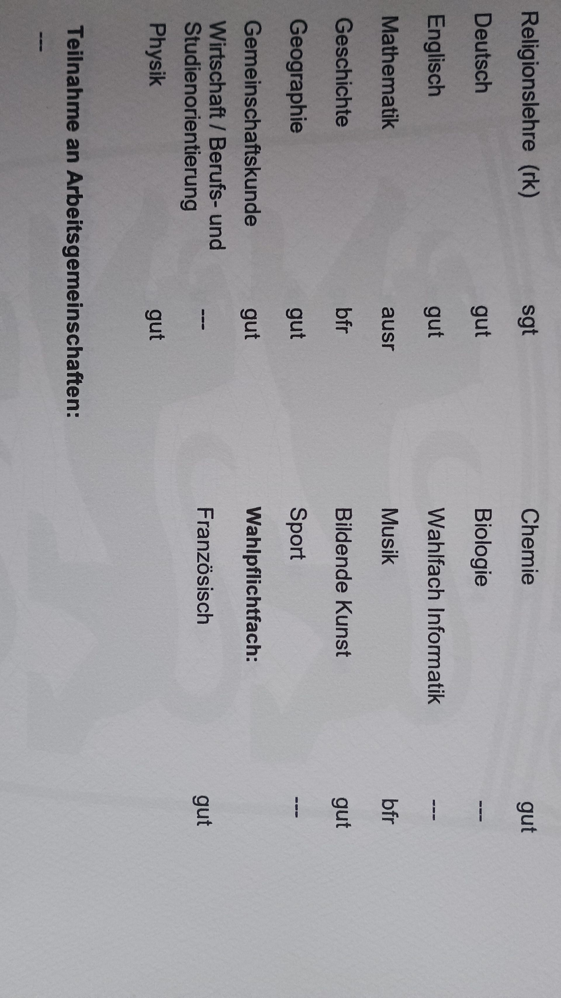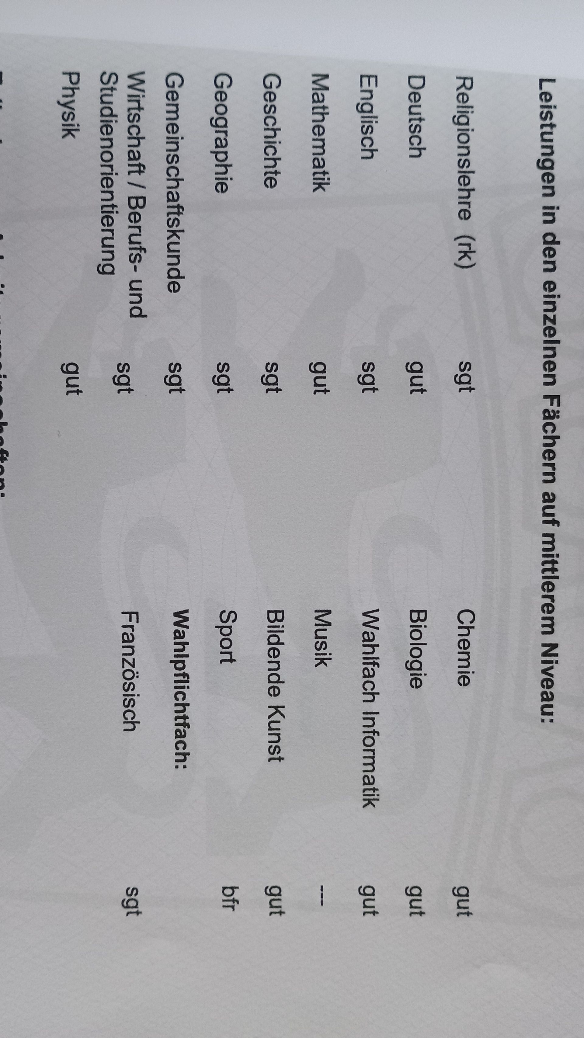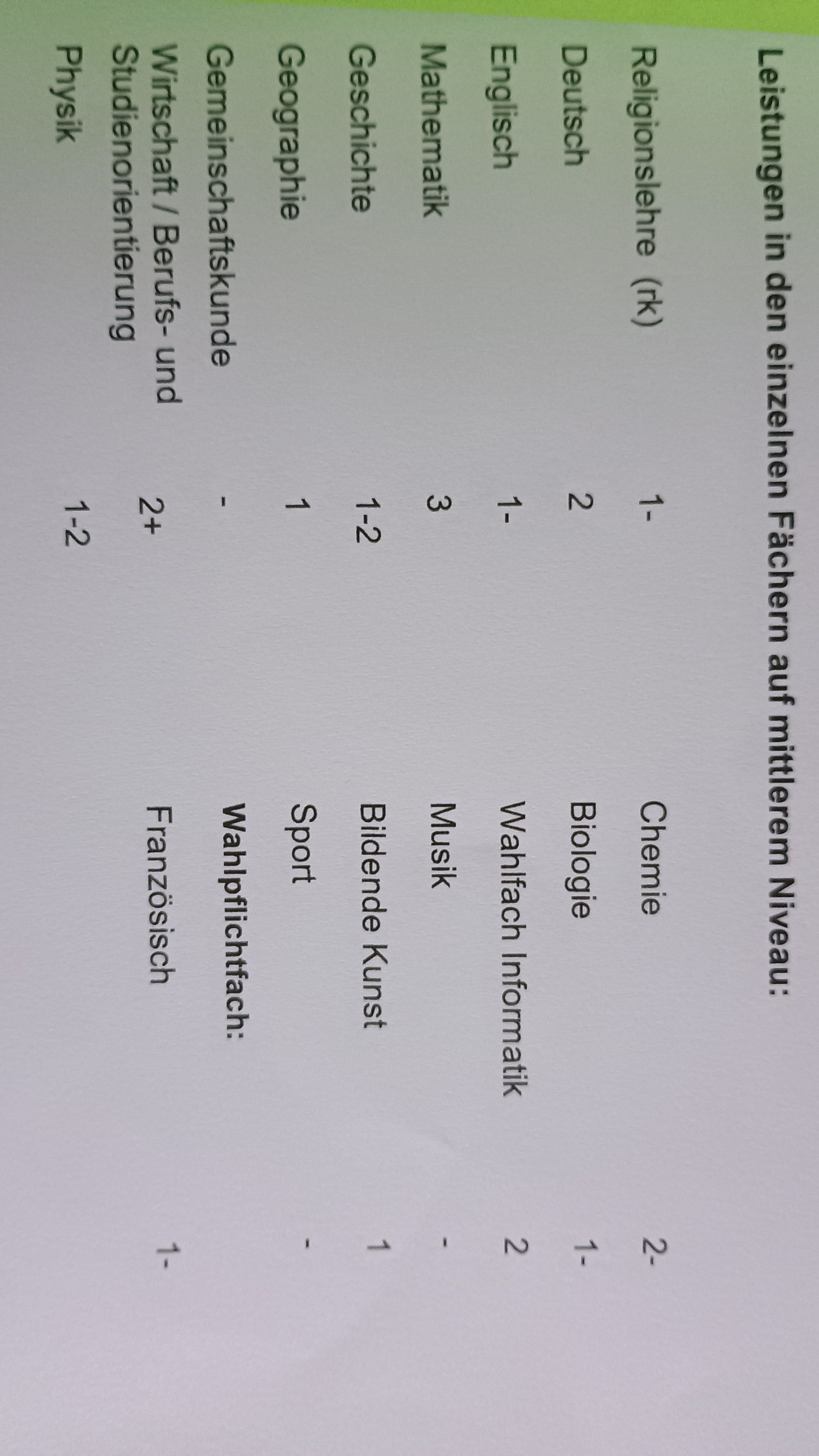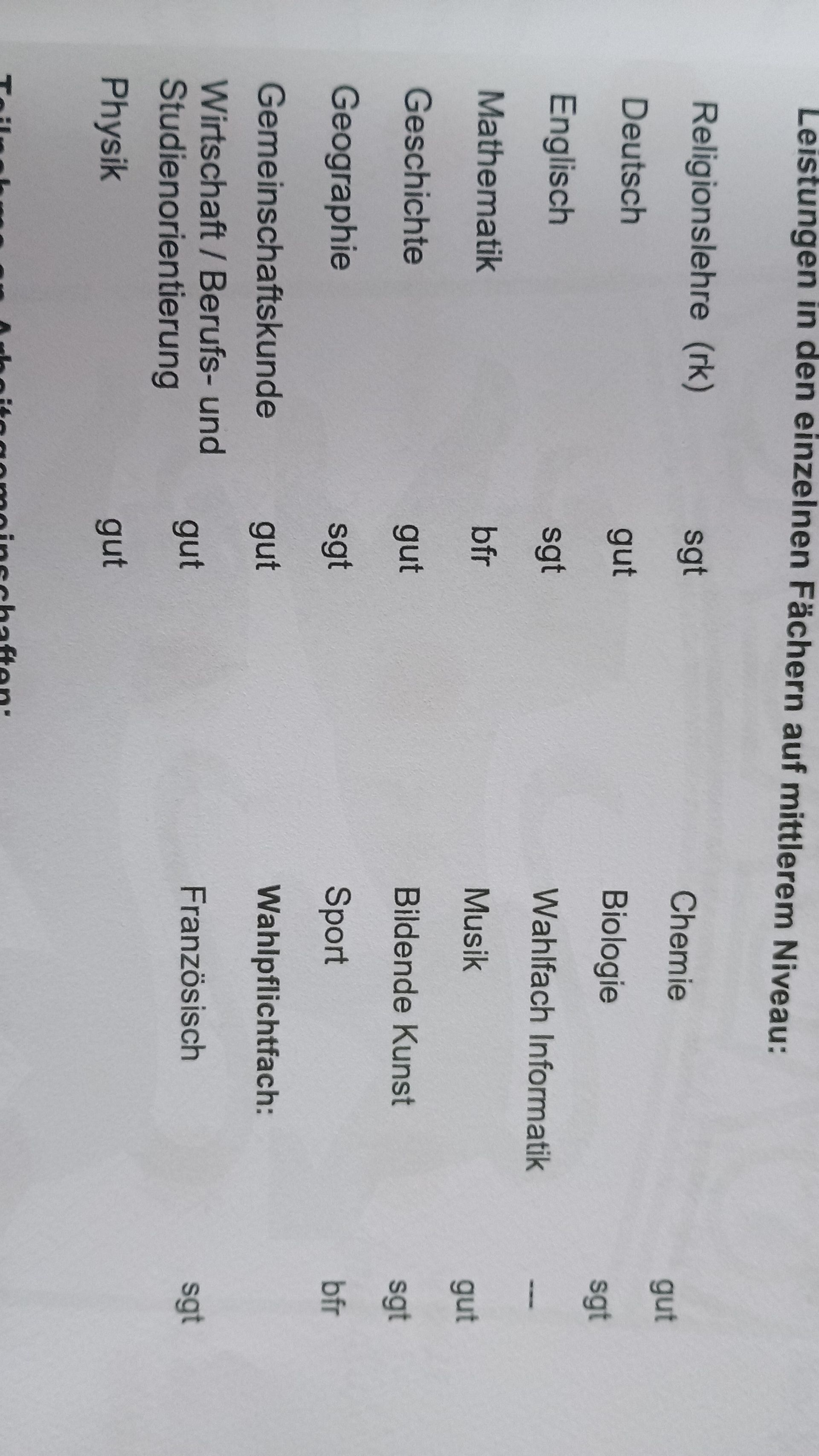 OK ich kann ein Bild von meinem Zeugnis schicken