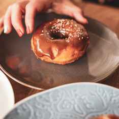 Alle Kinder bekommen ein Stück Donut. Auch Brigitte, sie bekommt die Mitte.