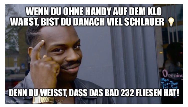 War heute ohne Handy auf der Toilette. Wir haben 232 Fliesen.