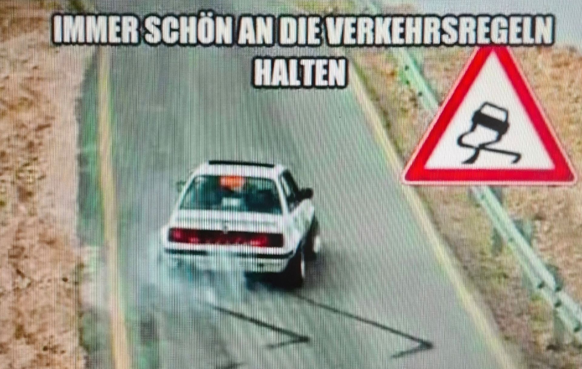 Der Opa von hinten: Ich habe doch gleich gesagt, dass wir nicht weit kommen mit dem geklauten Auto!