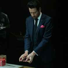 Im Zirkus während der Raubtiernummer. Der Dompteur geht zum Löwen, öffnet die Hose, holt sein bestes Teil heraus und legt es in das offene Löwenmaul.
