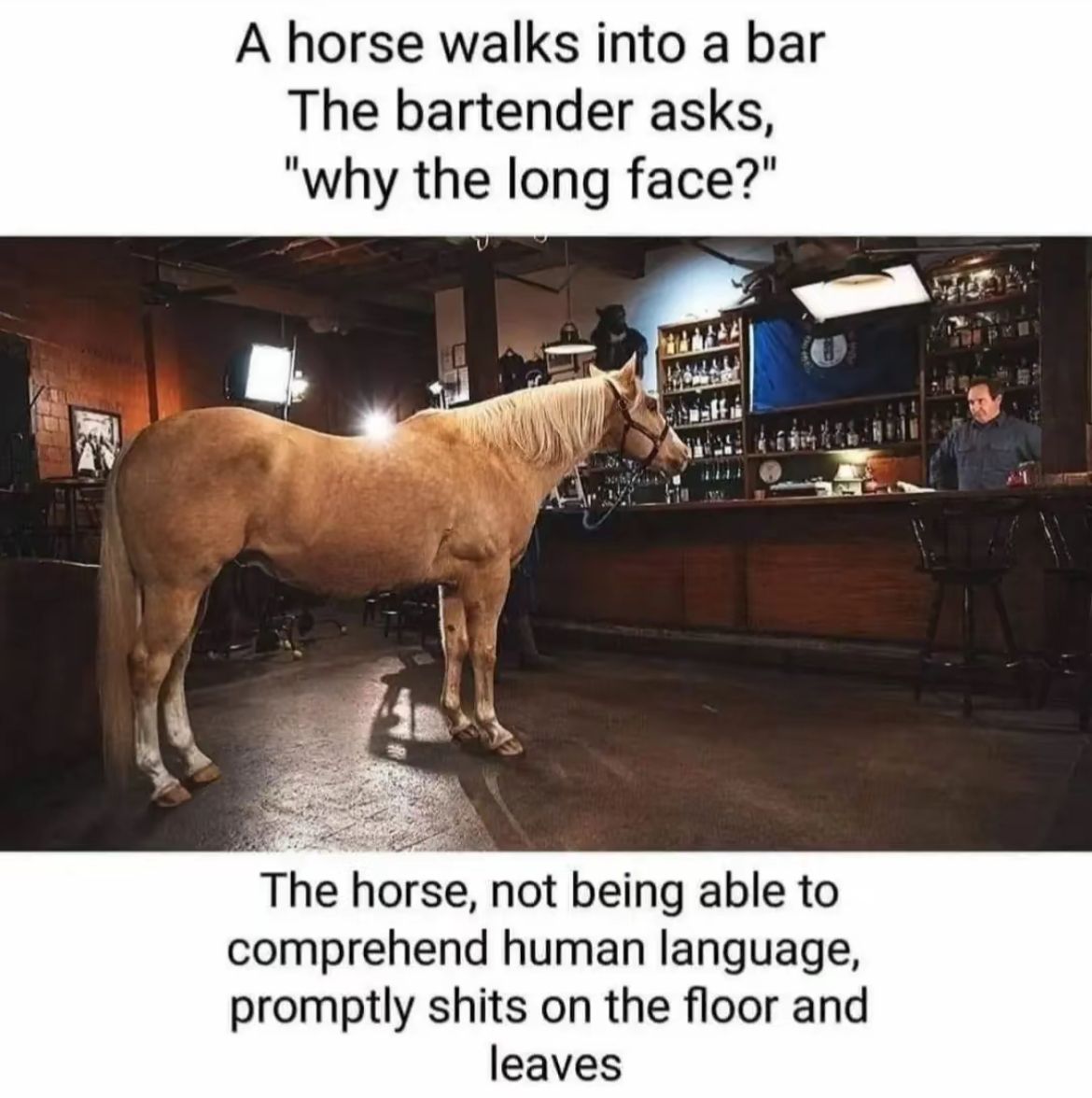 "Das ist eine lange, lange Geschichte. Ich stand vor langer Zeit an einer Bushaltestelle, da riefen zwei Frauen: 'Frische Aprikosen, frische Aprikosen!' Ich verstand aber: 'Leck mir an den Busen, leck mir an den Busen!' Tat ich es. Da sagten die Frauen: 'Wenn du das noch einmal tust, kommst du in den Bus!' Tat ich es noch einmal. In dem Bus sagte der Busfahrer: 'Alle bitte aussteigen, alle bitte aussteigen!' Ich verstand aber: 'Alle Fetten rausschmeißen, alle Fetten rausschmeißen!' Da sagt der Busfahrer: 'Wenn du es noch einmal tust, kommst du in die Kirche!' Tat ich es noch einmal. In der Kirche sagt der Priester: 'Alle die Hände falten und beten, all die Hände falten und beten!' Ich verstand aber: 'Alle in die Hände kacken und kneten, alle in die Hände kacken und kneten!' Da sagt der Priester: 'Wenn du es noch einmal tust, kommst du auf den Kirchturm!' Tat ich es noch einmal. Auf der Kirsche saß ein alter, alter Mann, der sagte: 'Wenn du da runter springst, bist du für immer tot!' Ich verstand aber: 'Wenn du da runter springst, kriegst du morgen ein Marmeladenbrot!' Und ich habe es heute immer noch kein Marmeladenbrot bekommen."
