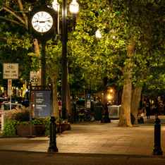 Eine Blondine geht nachts die Straße entlang. An einer Straßenlaterne hängt ein Zettel: "Wohnung zu vermieten".