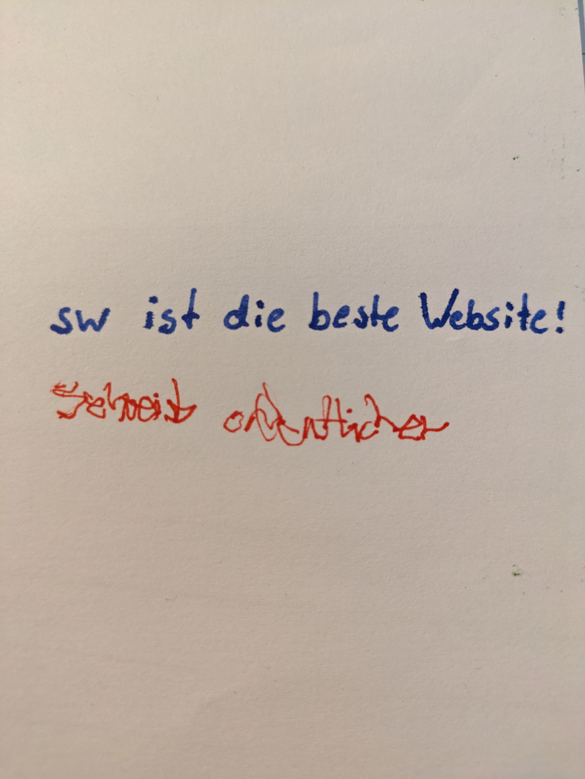 Jeder kennt es nach einem Test(SW Beispiel), wenn du dann auch noch den Lehrer fragen musst was da steht