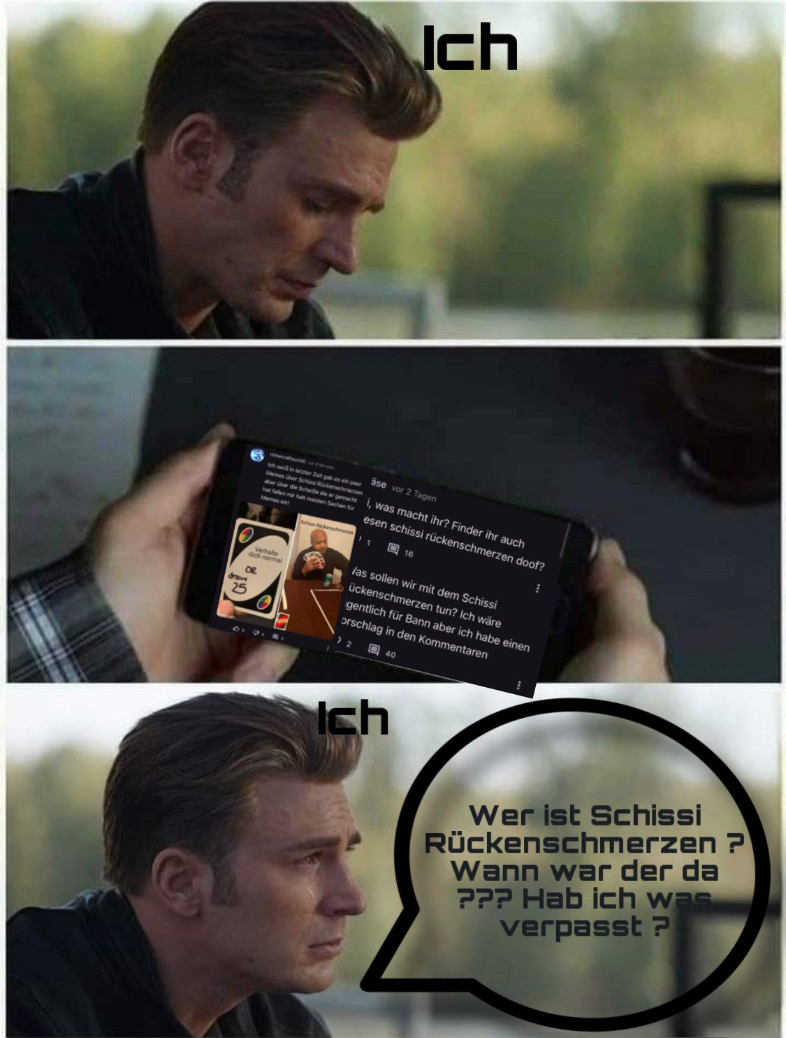 Ich weiß in letzter Zeit gab es ein paar Memes über Schissi Rückenschmerzen aber über die Scheiße die er gemacht hat fallen mir halt meisten Sachen für Memes ein!
