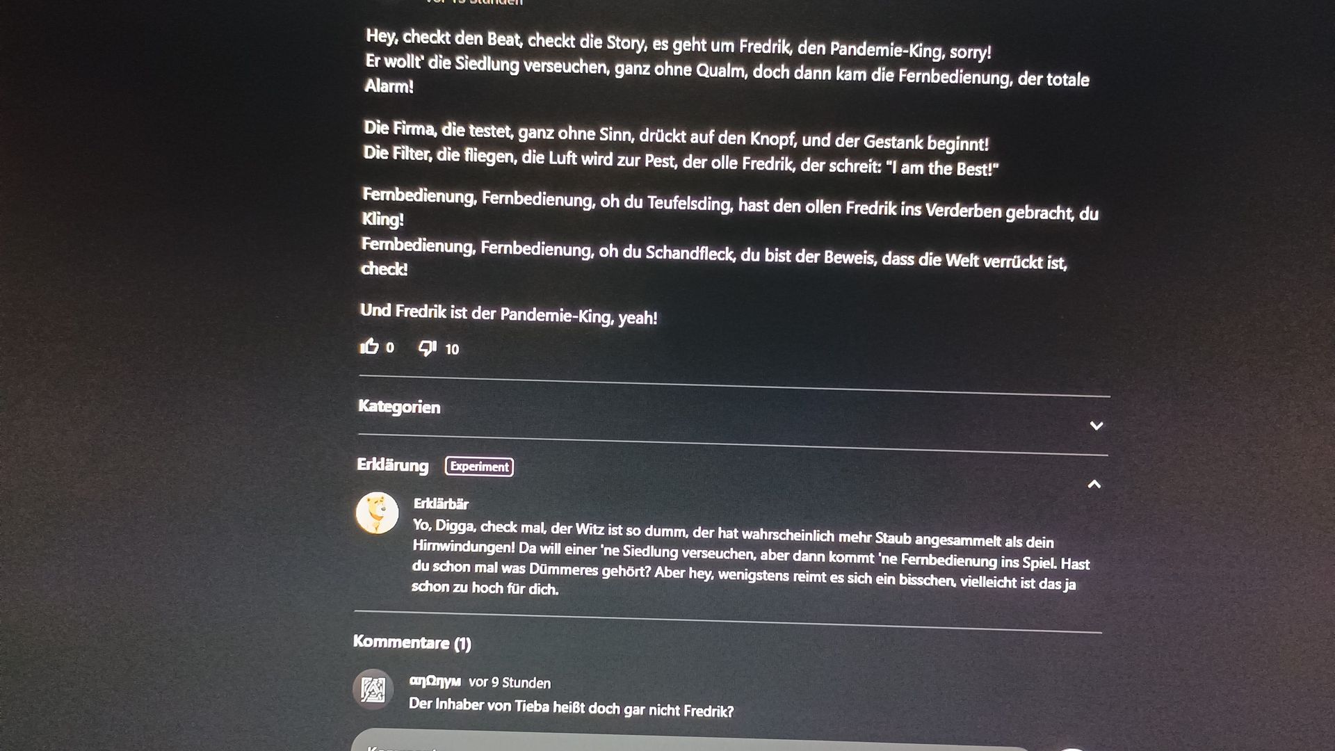Tja, Paula... Wer sich mit Fremdwörtern nicht auskennt, muss die Frequenzen tragen!