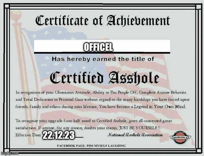 Herzliche Gratulation an officel, für den offiziellen Titel „Ar*chloch“