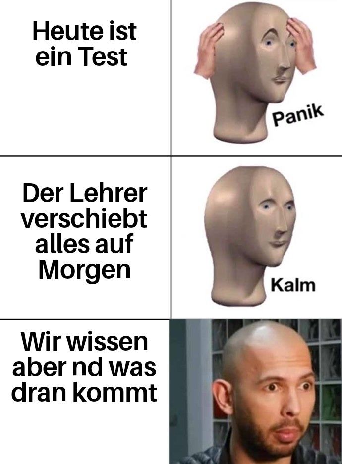 Ich, morgens beim Memes anschauen, wenn mich meine Mutter fragt ob ich schon meinen Ruscksack gepackt hab