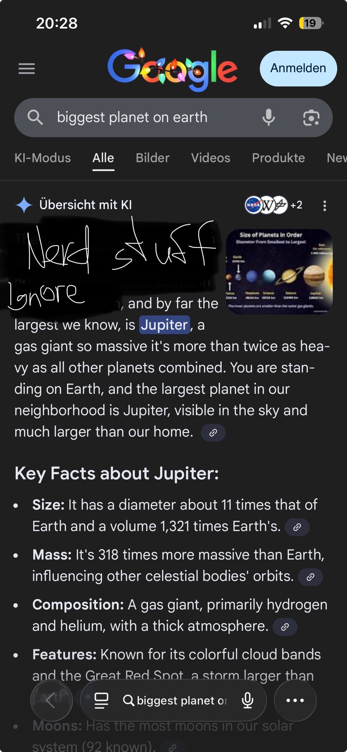 Pass mal auf, Bürschchen. Wenn du nach Planeten AUF der Erde suchst, hast du die Kontrolle über dein Leben verloren. Das Meme macht sich über genau solche Pfosten lustig, die Google für jeden Müll benutzen, ohne nachzudenken. 0% Gehirn ist bei dir wahrscheinlich noch geschmeichelt.