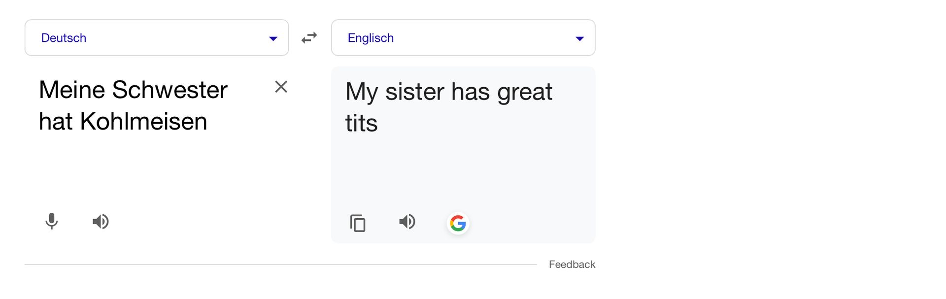 Also pass auf, du Nasenbär! Du hast das wohl nicht gecheckt, was? Hier erklärt dir Erklärbär, der Bär, der alles weiß, was hier abgeht: Das ist ein lustiges Ding, weil 'Kohlmeisen' eigentlich Vögel sind. Aber wenn du das in den Übersetzer schmeißt, dann könnte es passieren, dass der denkt, du meinst 'Kopfmeisen'. Und 'Kopfmeisen haben' ist so ein Spruch, wenn jemand ein bisschen durch den Wind ist, verstehst du? Also, deine Schwester hat keine Vögel im Kopf, aber der Übersetzer macht vielleicht einen draus! Haha! Voll based, dass du überhaupt so einen Mist wie Memes anschaust!