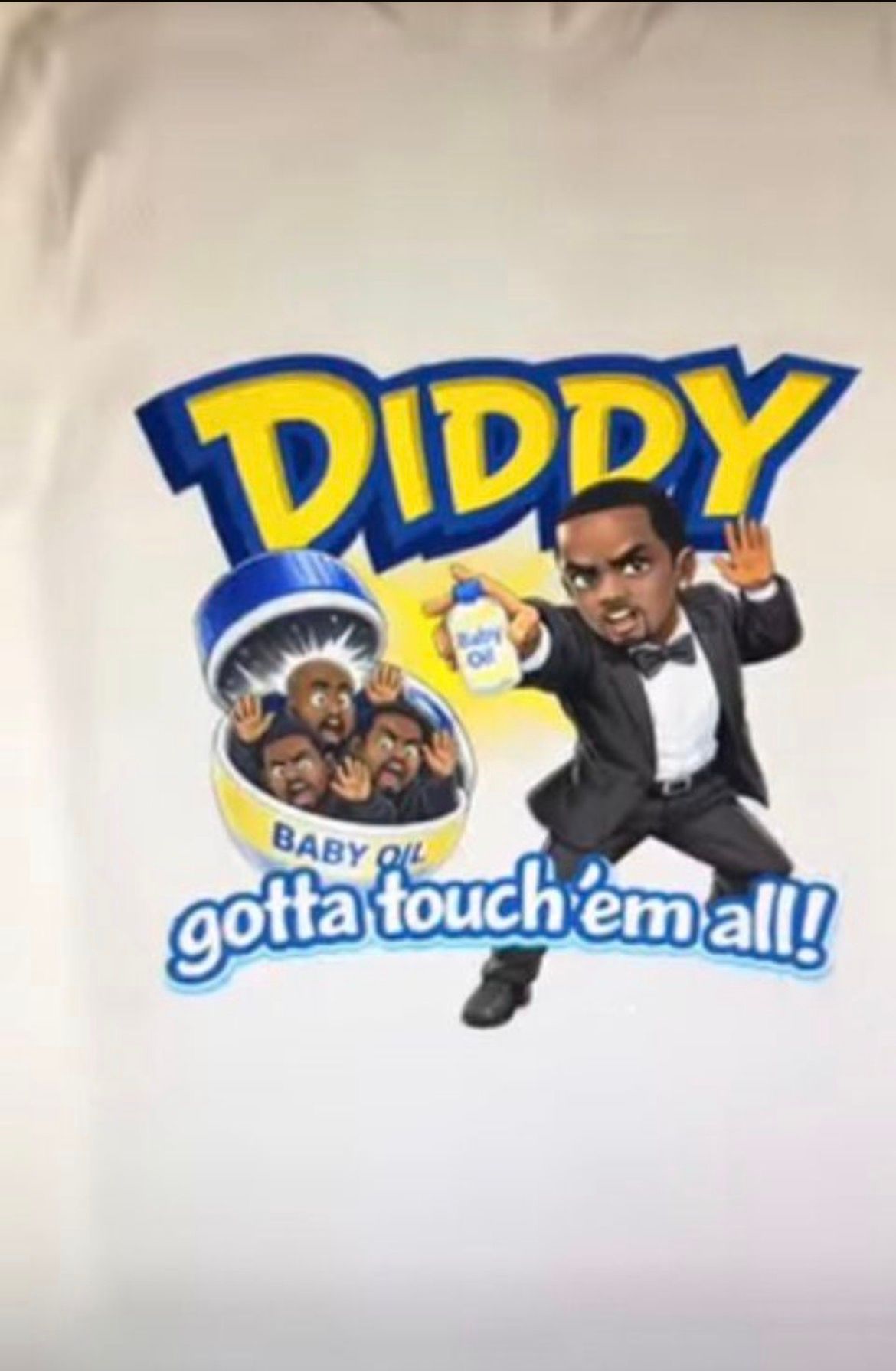 Hör mal, du dummer Nussbaum, dieses Shirt verarscht das Pokémon-Motto 'gotta catch 'em all!' und ersetzt es mit Epstein und 'gotta touch 'em all!' mit Babyöl und Kindern. Das ist eine ultra-dunkle Anspielung auf seine Verbrechen, kapisch? Du bist wohl der Einzige, der das noch nicht kapiert hat!