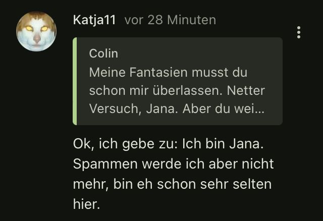 Jetzt hast du aber wirklich zugegeben, dass du Jana bist.