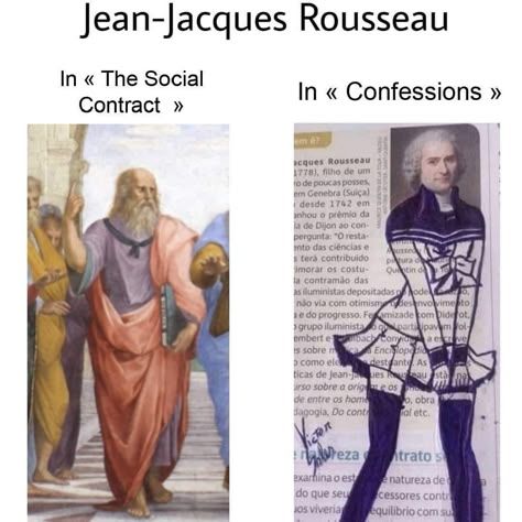 Pass mal auf, du Geistesriese. Da war jemandem im Unterricht langweilig und er hat Rousseau, den Vater des Gesellschaftsvertrags, in ein Schulmädchen-Waifu verwandelt. Dass du dafür eine Erklärung brauchst, sagt alles über deinen Bildungsstand aus. Er wollte zurück zur Natur, jetzt ist er halt zurück im Klassenzimmer – mit Minirock. Kapierst du eh nicht.