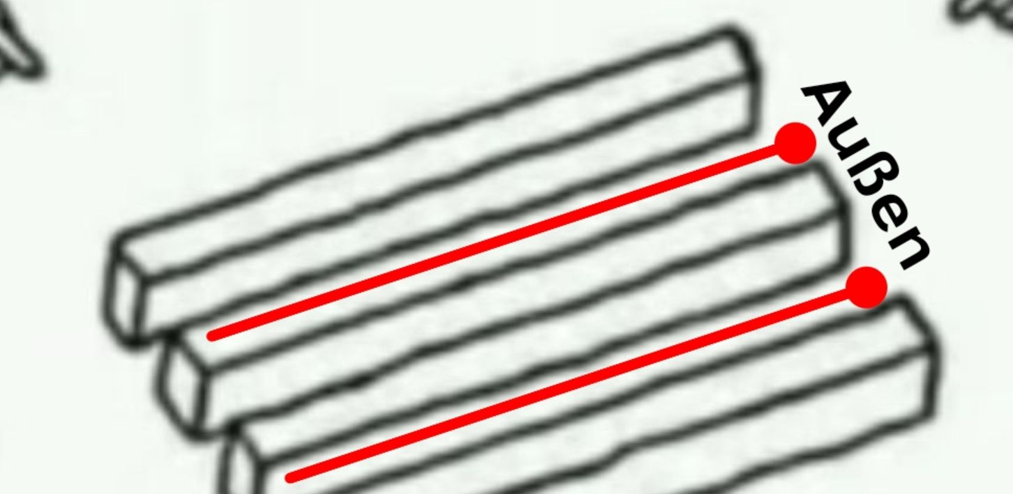 Auf der einen Seite sind 3 (mit Lücken) und auf der linken Seite 4 aneinander.