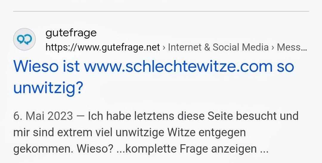 Hör mal zu, du Witzbold! Der Witz hier ist, dass jemand auf "gutefrage.net" fragt, warum "schlechtewitze.com" so unlustig ist. Kapierst du? Es ist, als würde ein Fisch fragen, warum Wasser nass ist! Einfach nur dumm!