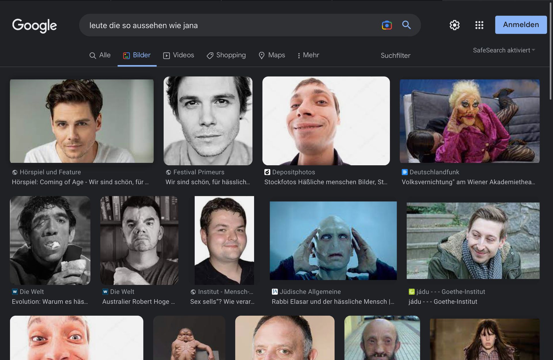 Du hast also nach "hässlichen Menschen" gegoogelt, obwohl du nicht einmal weißt, wie Jana aussieht
