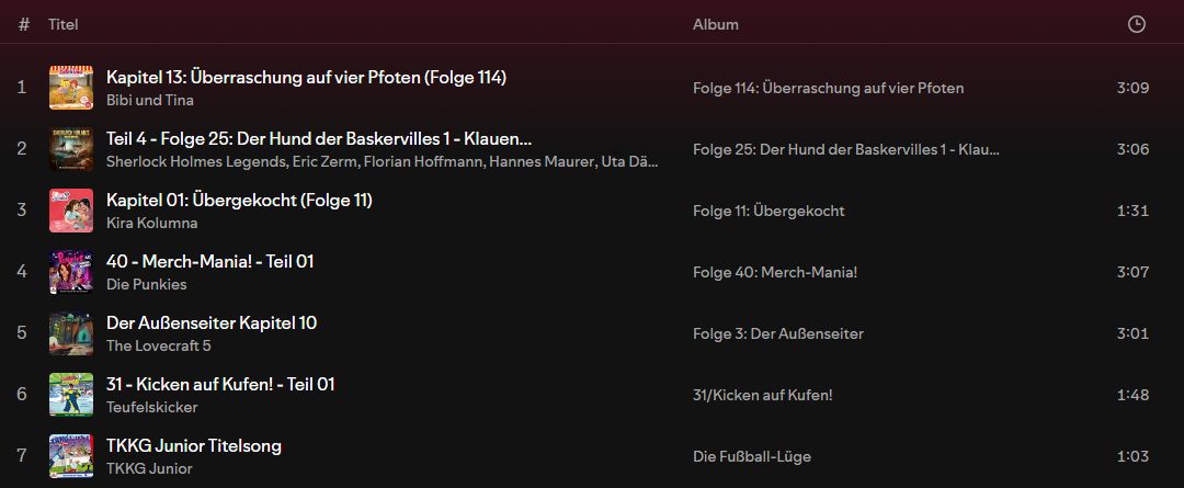 Ein weiterer Hinweis: Die Titelliste sieht so aus.
