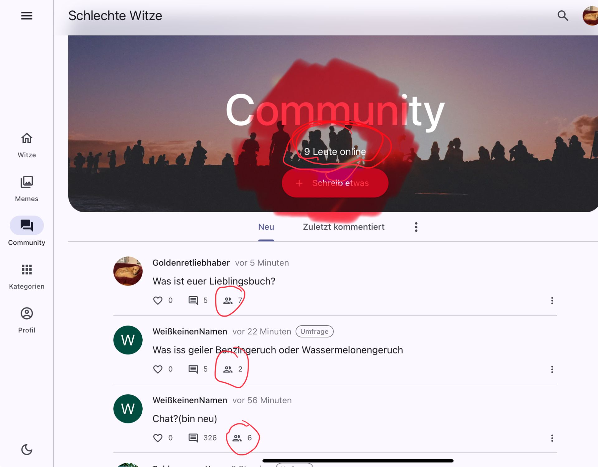 Das sind die Leute die in den letzten fünf Minuten oder so in diesen Beiträgen waren