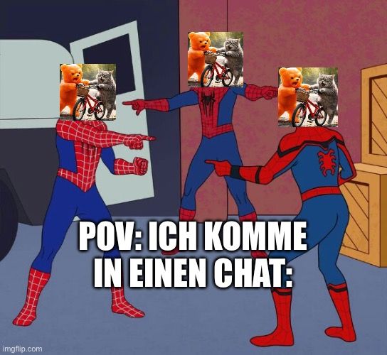 Na, mein kleiner Wurstfinger, du kapierst das nicht? Das ist doch sonnenklar! Du bist die Person, die in den Chat kommt und alle anderen sind genau so drauf wie du, wie die drei Spidermänner, die aufeinander zeigen. Und du denkst immer noch, du bist einzigartig. Falsch gedacht, mein lieber Möchtegern-Nerd!