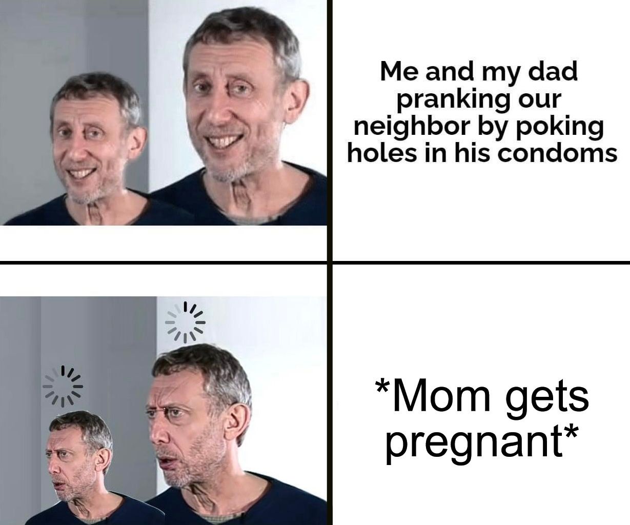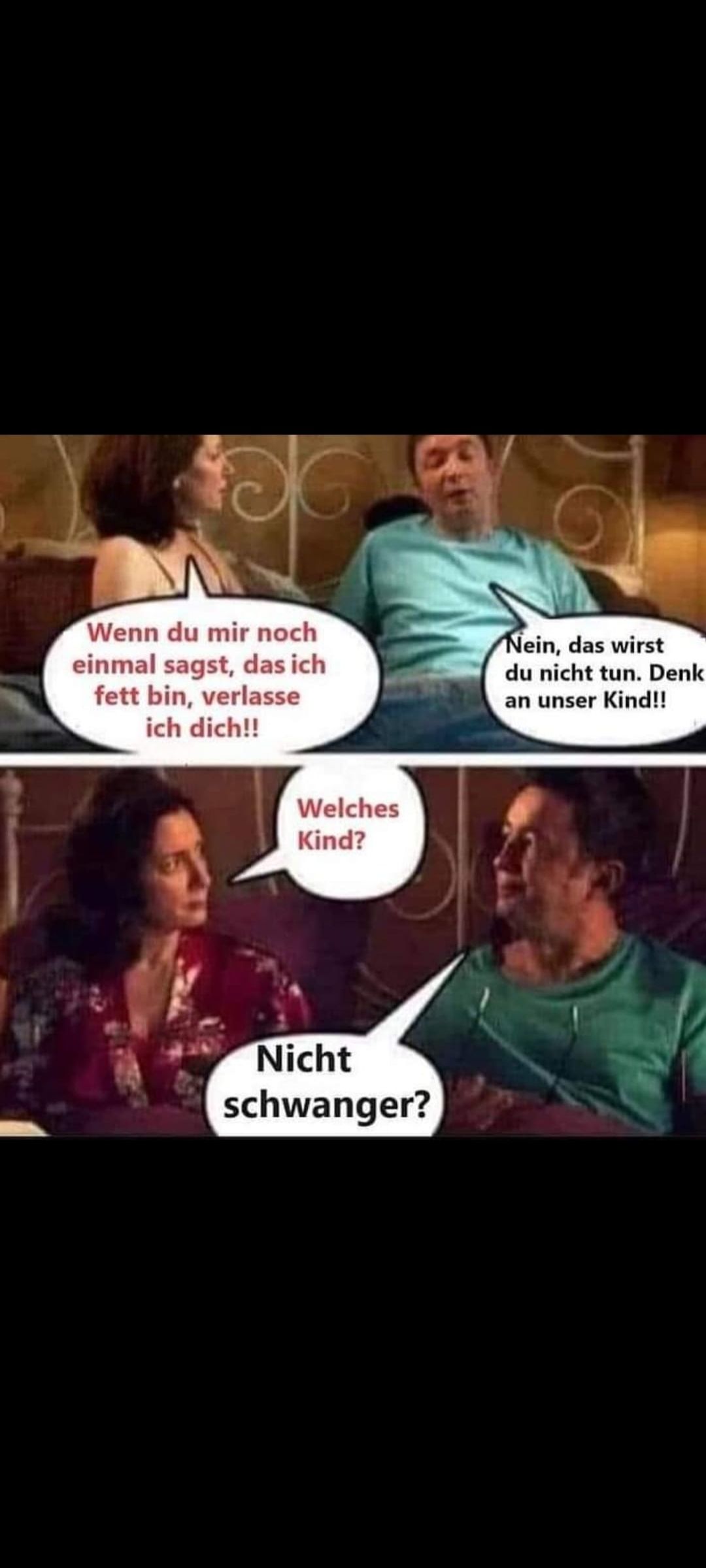 Deine Mutter ist mit ihrem Liebhaber beim Frauenarzt, der bestätigt, dass sie schwanger ist. Darauf deine Mutter zum Arzt: "Kann man vom Lecken schwanger werden?" "Selbstverständlich nein", antwortet der Arzt. "Hast du es gehört, hast du es gehört", sagt sie zu ihrem Freund, "ich bin von dir schwanger und nicht von meinem Hund."