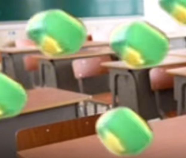 Der Klassenraum, wenn ich nachden Amoklauf von der Toilettte zurück komme