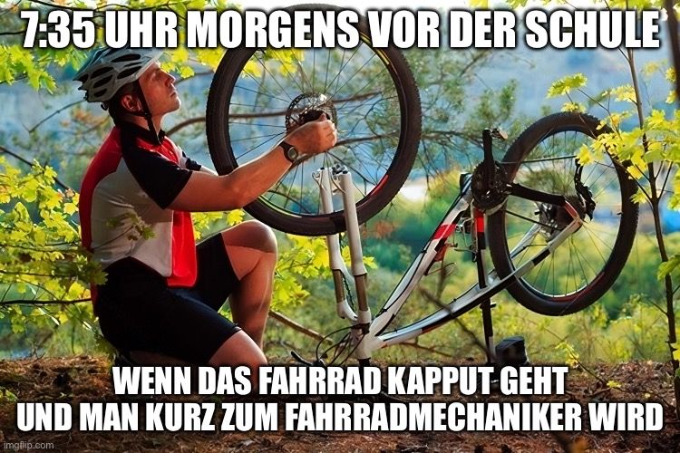 Wer von euch kennt diesen Moment wenn man morgens vor der Schule zum Fahrrad-Mechaniker wird weil die Kette raus gesprungen ist