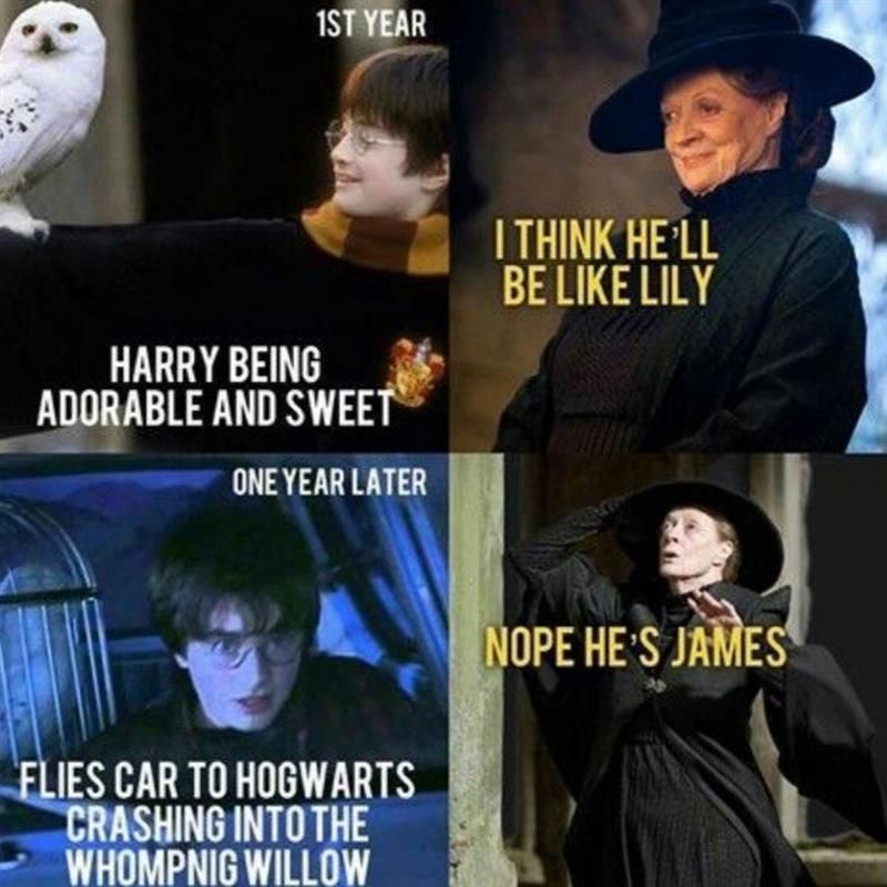 2. Jahr: Harry kommt mit fliegendem Auto zur Schule. McGonnagall: Nope, definitiv James!