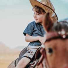 Lisa ist zum allerersten Mal auf einem Reiterhof. Nachdem sie aufs Pferd geklettert ist, zeigt ihr Gesicht nach hinten.