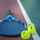 Zwei Tennisbälle rollen einen Gang entlang.