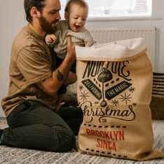 Weihnachtsmann: trägt seinen Sack auf dem Rücken.