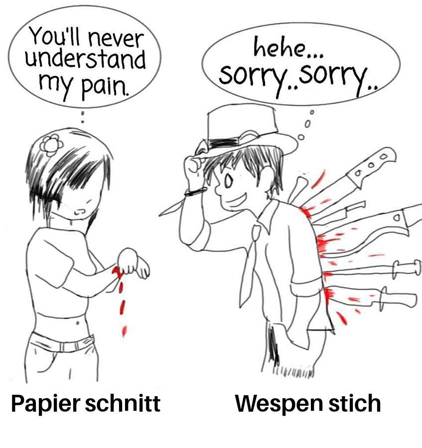 Herr Doktor, wenn ich hier drücke, dann tut es weh. Und wenn ich da drücke, dann auch. Und hier unten ebenfalls. Ich mache mir ernsthaft Sorgen. Was habe ich bloß?