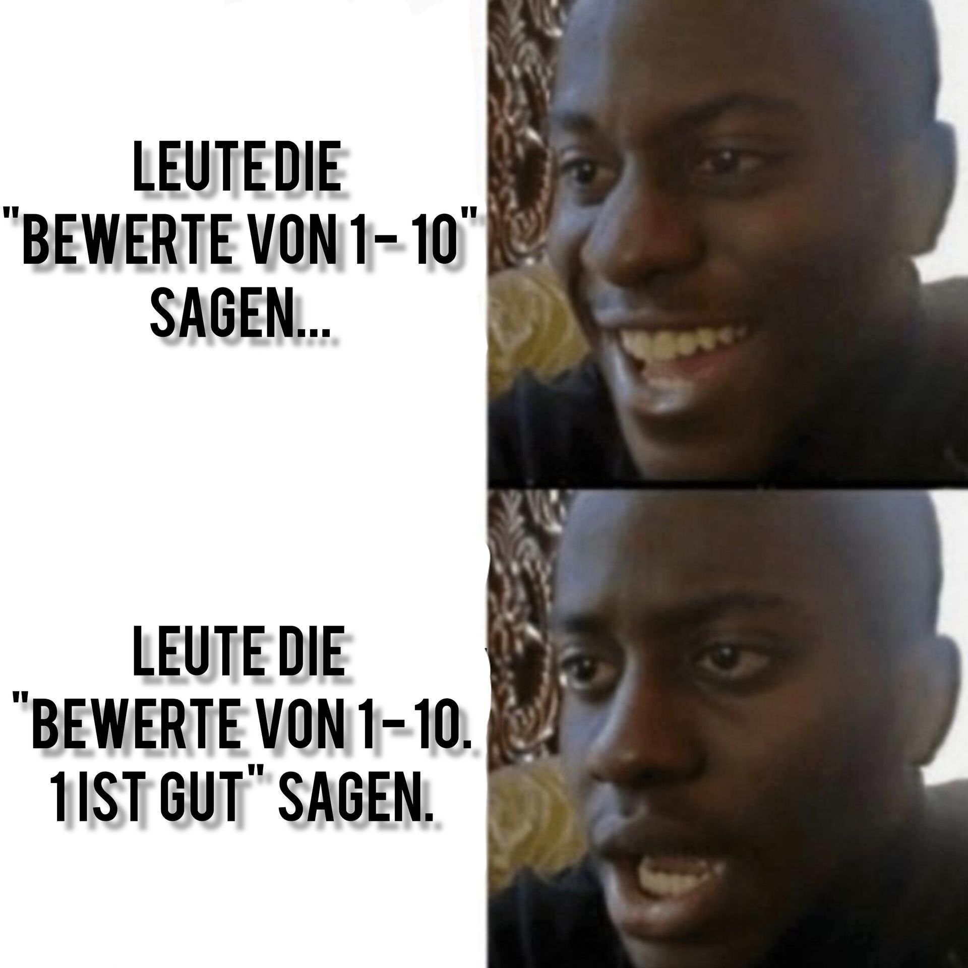 (1 ist am wenigsten und 10 am meisten.)