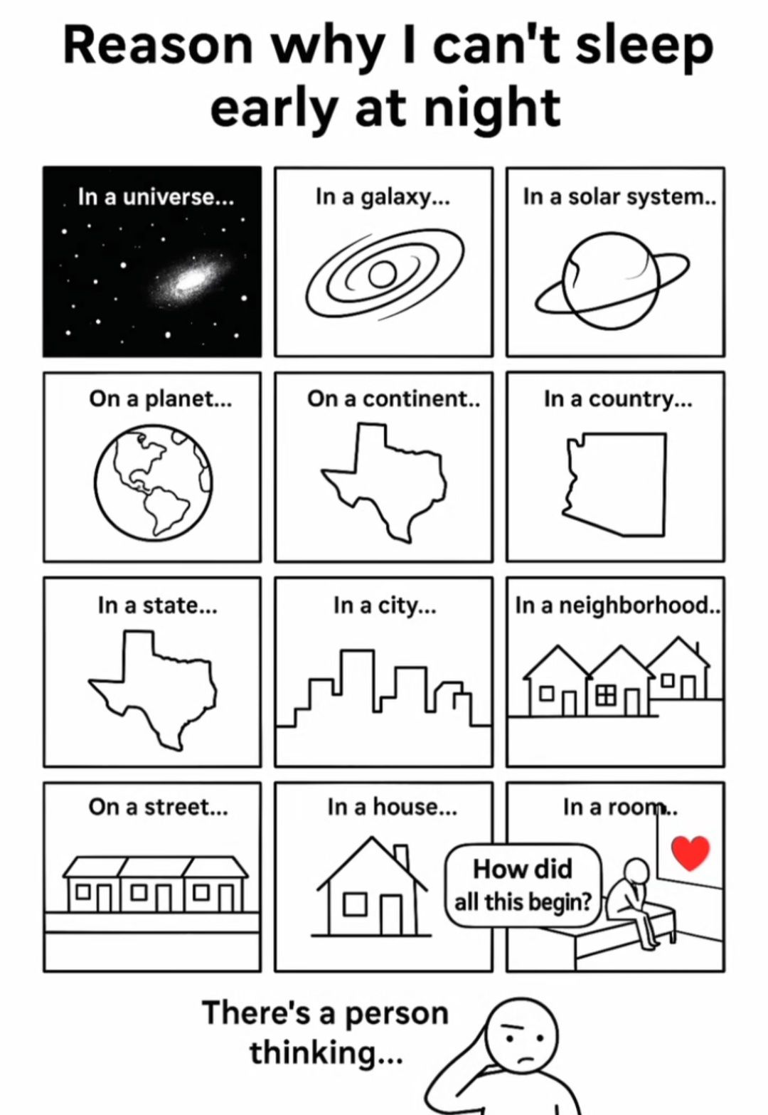 Kommt eine Motte zum Internisten. "Was kann ich für Sie tun?", fragte der Arzt. Die Motte antwortet: "Ach, Herr Doktor, wie kann ich mich erklären? Der Albdruck der Postmoderne geht mir schwer ans Herzen, meine Angst um die Welt kennt schier keine Grenzen mehr. Tagein, tagaus schufte ich für dieses kapitalistische System und nehme abends Zuflucht im Alkohol. In einem Weltangstdelirium gehe ich meinem solipzischten Wahn nach, jede Nacht und jeden Tag. Alles scheint sich gegen mich verschworen zu haben. Ich fühle mich schuldig für die ganzen Kriege in der Welt. Was können wir nur tun gegen das Schlimme, das so brutal in unsere Welt hereingebrochen ist? Ich bin verwirrt, nein die Welt ist verworren, alles ist so kompliziert geworden. Nachts wache ich schweißgebadet auf und denke an Nordkorea."