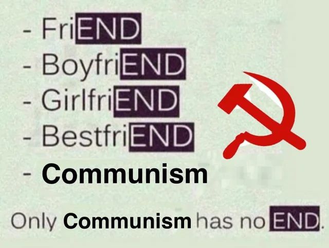 - Sozialismus (Endphase): Sie besitzen zwei Kühe. Ihr Nachbar besitzt keine. Die Regierung beschlagnahmt beide Kühe und verkauft Ihnen die Milch. Sie stehen stundenlang für die Milch an. Sie ist sauer.