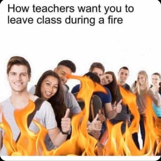 Alle Lehrer: "Verlasst bitte ruhig und vernünftig das Gebäude."