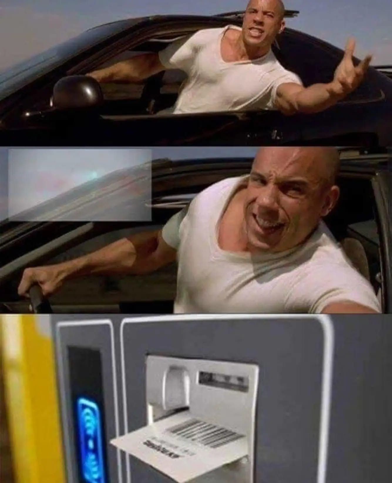 Am Bahnautomaten erhält Chuck Norris sein Wechselgeld in Scheinen.