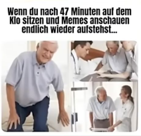 Meine Mutter muss kacken und ruft: "Ohhhhhhh, ich muss kacken, nun!"