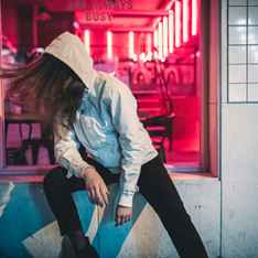 Ein trauriger Mann steht auf einer Brücke und überlegt, ob er springen soll.