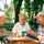 Maria und Heike sitzen im Restaurant an ihrem Tisch.
