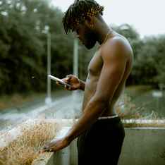 Ich sehe am Bahnhof einen nackten Mann, der Trommel spielt.