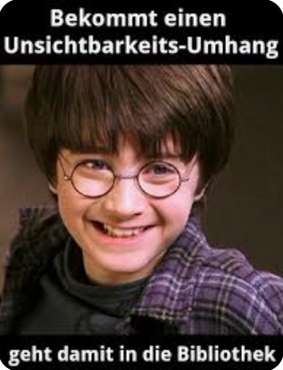 "Ich habe einen Umhang, der mich unsichtbar macht. Aber anstatt in die Mädchenumkleide zu gehen, besuche ich lieber meinen großen haarigen Freund Hagrid!"
